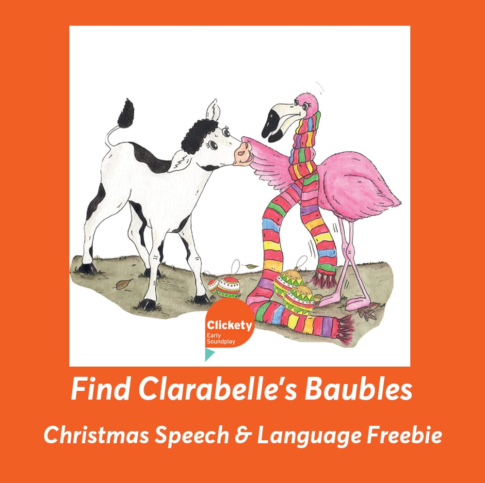 Christmas themed objects hidden in a picture such as Find Clarabelle’s Baubles (or real ones for a treasure hunt) provide opportunities for modelling and reinforcing ‘Wh?’ words – Where are the puffins? Who is wearing Clarabelle’s scarf?